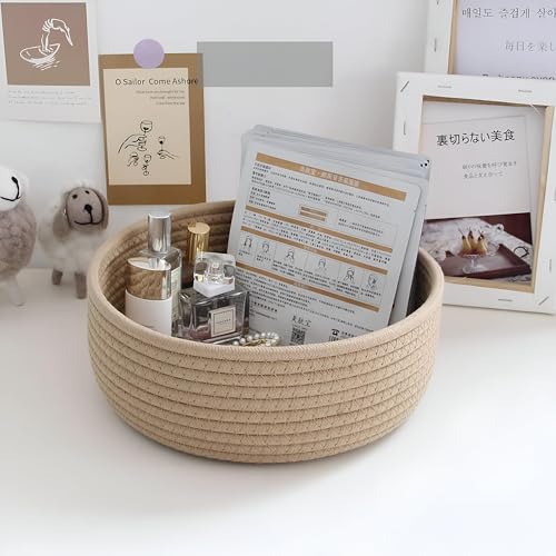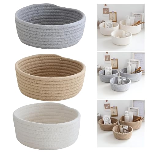 Generic - Linen Basket - Versatile Round Storage Basket for Scarves, Headbands, and Basic Essentials, Organizing Your Home, Closet, Dresser, and Drawers - Multiple Colors (2 باسكت كتان مدور)