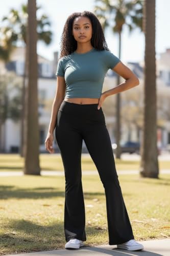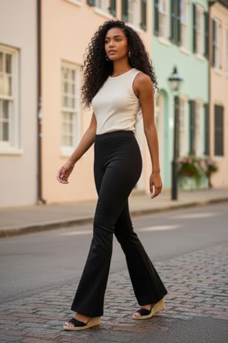 linen Pants - بنطلون رياضي للنساء من الكتان بقصة ساق واسعة وخصر مرتفع - بنطلون ضيق بقصة واسعة الساق (عبوة من قطعة واحدة)