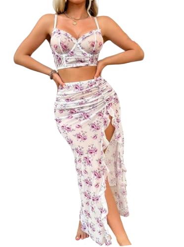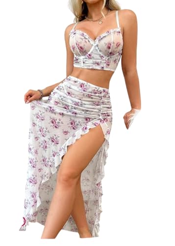 Generic - Lingerie Chiffon Top Suspenders Ruffle Side Slit Pocket Floral Print + Under (One Size Applies to 85K)