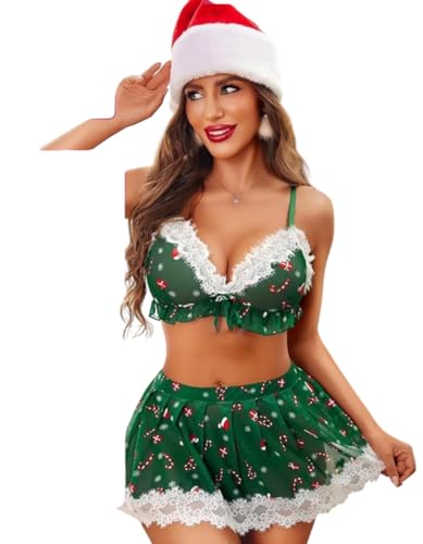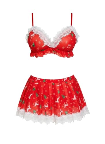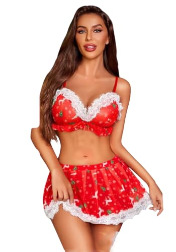 Generic - لانجري تنكري للكريسماس ليكرا جيل توب حمالات و جيب قصيرة مطعم بدانتيلا ( وان سايز يلبس لحد 85 كيلو و بألوان متعددة )