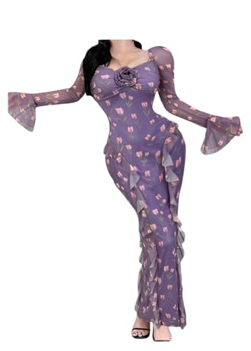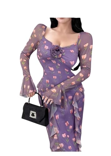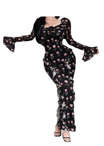 Generic - لانجري دريس بأكمام طبقتين شيفون و ليكرا بنقشة زهور ( وان سايز يلبس لحد 85 كيلو و بألوان متعددة )