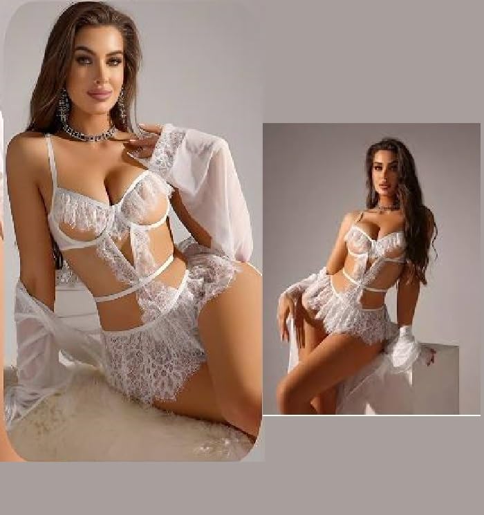 Generic - لانجرى مع روب بلاى سوتس قصير قميص نوم انيق بيبي دولز حريمي شفاف من كيان للتجارة كود 424