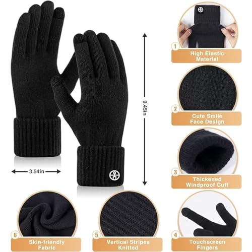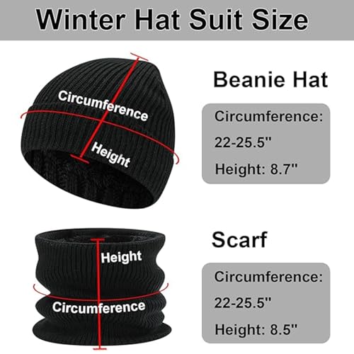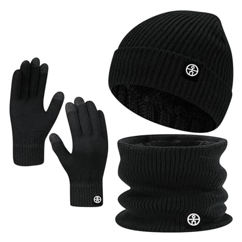 LinJie - مجموعة قبعة صغيرة شتوية ووشاح وقفازات مناسبة لشاشة تعمل باللمس من لينجي، مجموعة تدفئة الرقبة وقبعات شتوية 3 في 1 للشتاء (لون أسود)