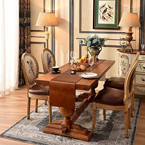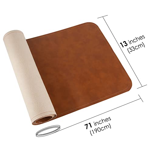 Linkidea - مفرش ترابيزة طولي من الجلد النباتي، 71 × 13 بوصة، عازل للحرارة، مقاوم للماء، مفرش ترابيزة جلد صناعي رائع للاستخدام اليومي والعطلات ومناسبات تقديم الطعام، سهل التنظيف (بني)