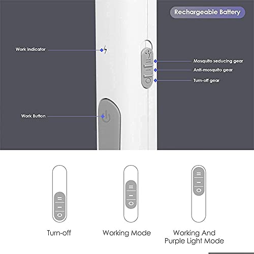 • مضرب أكثر كفاءة:- مصباح كهربائي مدمج بخرز ضوء أرجواني يمكن أن يطلق طول موجي جذاب 395 ملم، فقط ضعه على القاعدة وقم بتشغيله عند النوم