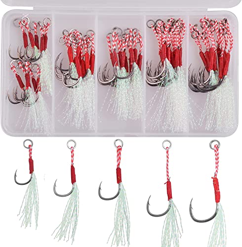 - Multi-purpose: fishing aid hooks are suitable for various jigs, vertical jigging baits, slow fall pitch jigs, stinger jigging jigs, etc. can also replace the treble hook on the bait. Mainly intended for fishing tuna, strip bass, salmon mackerel, thorny shark, etc