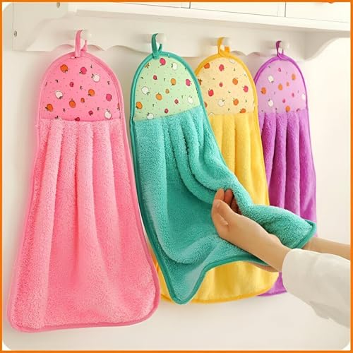 Generic - Lint-Free Kitchen Napkins - Super absorbent microfiber towels with hanging loop, designed for drying and cleaning, multicolor pack of 4 for everyday kitchen tasks (4 piece)