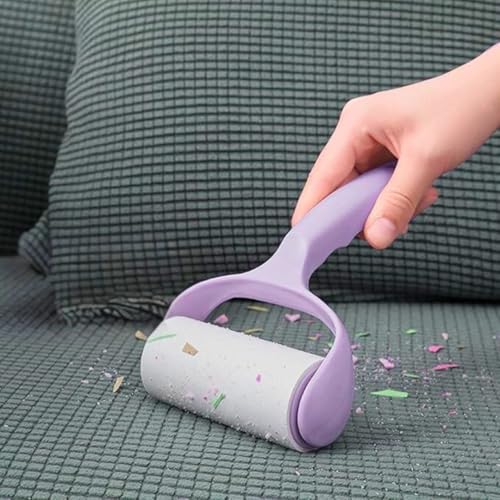 Generic - فرشاة بكرة لإزالة الوبر مع عبوتين لإعادة التعبئة، لشعر الحيوانات الأليفة والزغب والغبار في المفروشات والملابس وشابوه الاباجورة ومقاعد السيارة، بكرة لاصقة محمولة بمقبض مريح، (لون أرجواني)