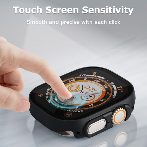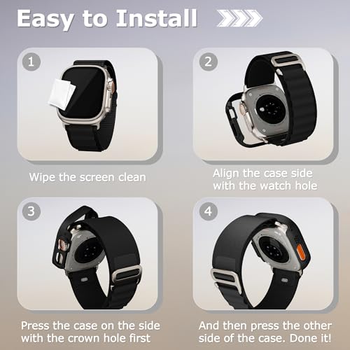 - 【سهل الارتداء والخلع】شاشة حماية لساعة آبل الترا 49 ملم مع فتحات دقيقة للأزرار والمنافذ الوظيفية، تسمح بالوصول إلى جميع عناصر التحكم والأزرار والمستشعرات وميزات ساعة آبل. يمكنك بسهولة تركيب وإزالة شاشة الحماية، والشحن المباشر، لا تحتاج إلى خلع سوار ساعة آبل الترا والجراب.