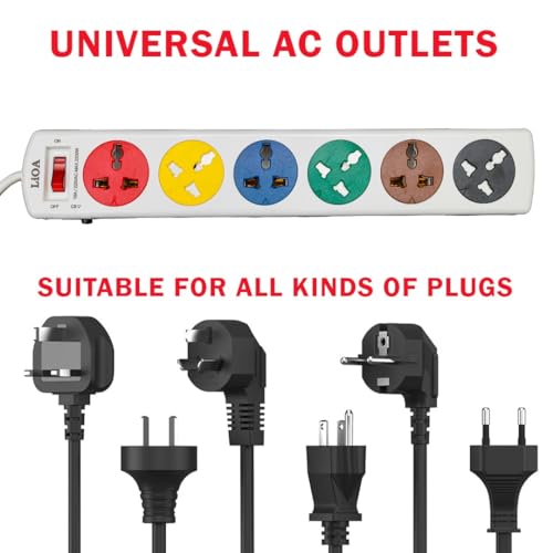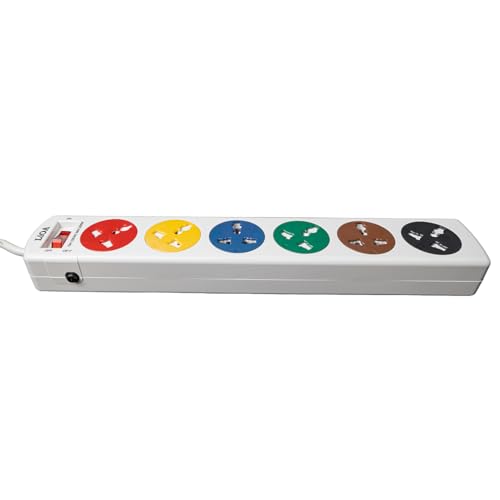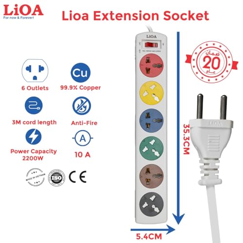 Generic - شريط طاقة عالمي عالي الجودة 6 دي ان دبليو 220 فولت 6 مقابس 2200 واط 10 امبير فيتنامي مقاوم للانفجار 100 درجة مئوية مفتاح حماية قاطع الدائرة الكهربائية 3 متر 100% نحاسي ابيض من ليوا