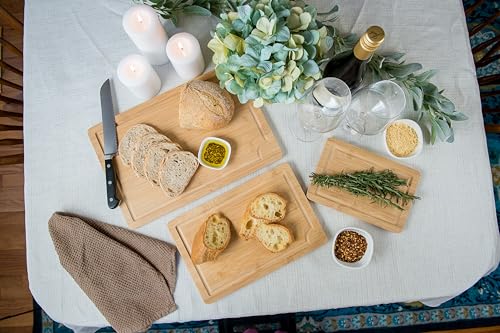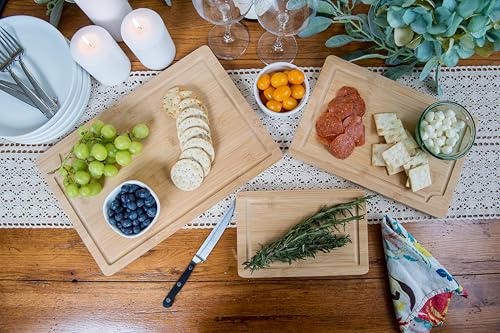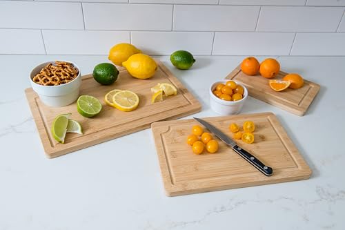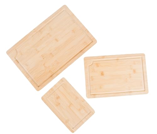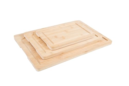Lipper International - ألواح تقطيع من خشب البامبو من ليبر انترناشونال، مزودة بمنافذ وأخاديد مدمجة لصنع العصائر ومقابض داخلية لتقطيع اللحوم والفواكه والخضروات، مجموعة من 3 قطع، مقاسات متنوعة