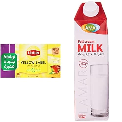 Lipton - Lipton Yellow Label Black Tea - 50 Tea Bags & Lamar Full Fat Milk - 1 Liter