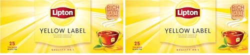 Lipton - ليبتون شاي اسود مع اوراق شاي مجففة بالشمس من يلو ليبل، كلاسيكي، لمذاق طبيعي غني، 25 كيس شاي (عبوة من قطعتين)