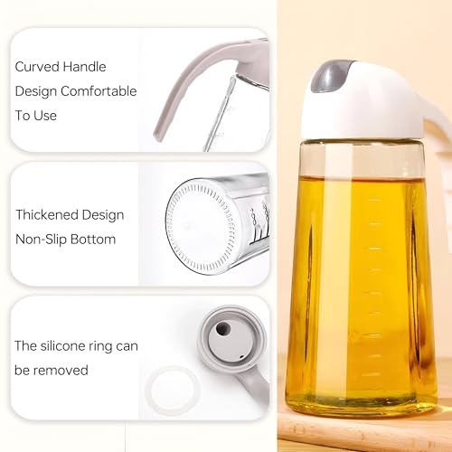 - Generous Capacity and Refilling Made Easy: With a generous 630 ml capacity, this dispenser reduces the need for frequent refills for added convenience. The wide mouth of the bottle makes pouring olive oil and other fluids simple, allowing for an easy and user-friendly refilling experience.