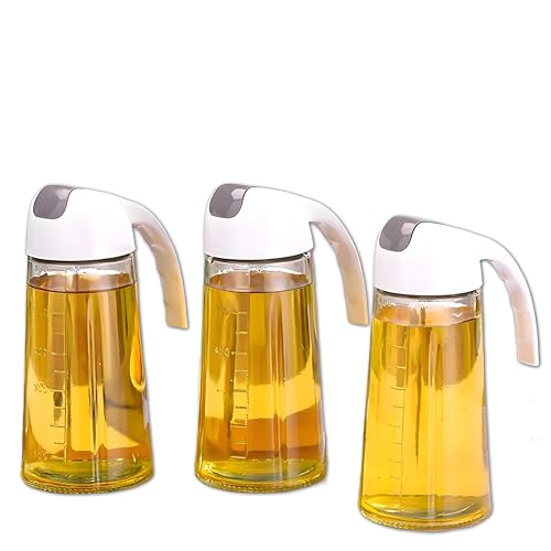 Generic - Liquid dispenser bottle in the kitchen - transparent glass for cooking and baking, automatically closing lid to prevent leaks and spills, stylish and functional oil storage solution (3pcs)