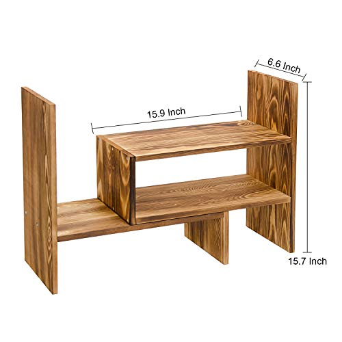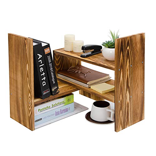 Liry Products - Adjustable Extendable Natural Wood Desktop Organizer Caddy Desk Organizer Countertop Shelf Bookcase Display Stand Rack Expandable Storage Office Home (Dark Brown)