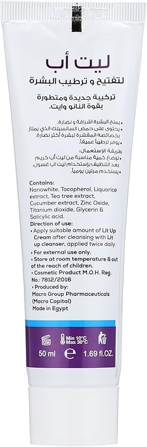 Lit up - كريم تبييض بالنانو وايت يفتح البشرة ويغذيها من ليت اب، 50 جم