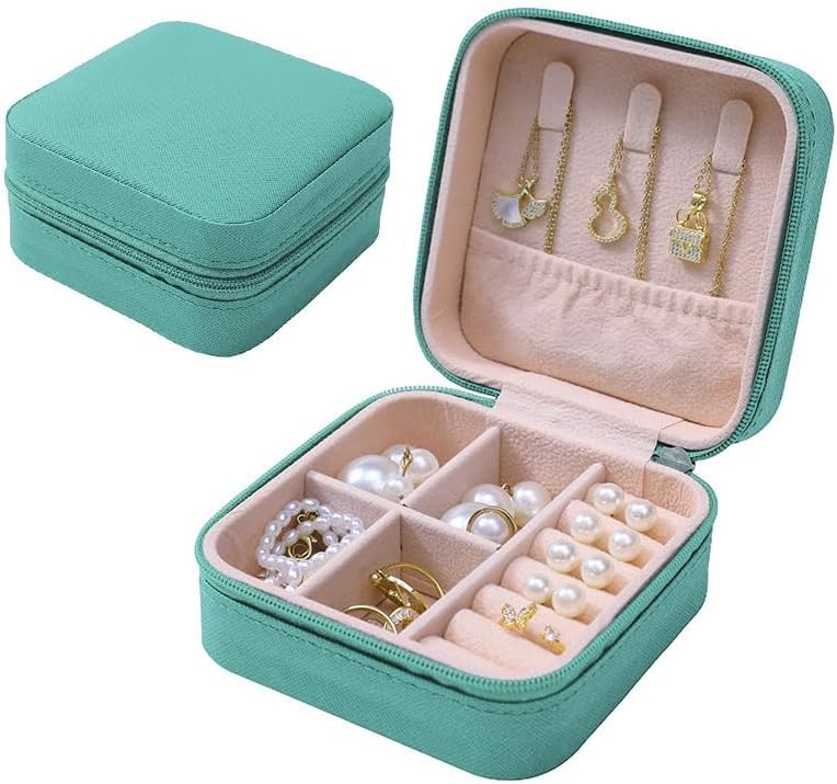 Generic - Litor Small PU Leather Jewelry Box – Compact Travel Organizer Case with Zipper – Portable Storage for Rings, Earrings, Necklaces & Bracelets – Elegant Gift for Women & Girls