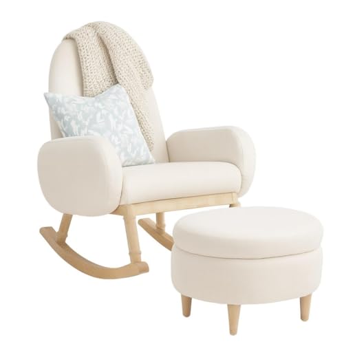 Little Baby Cribs - Panda's Lullaby Rocking Chair, Light Beige/Natural Wood