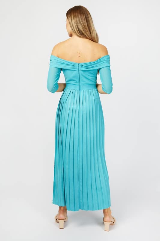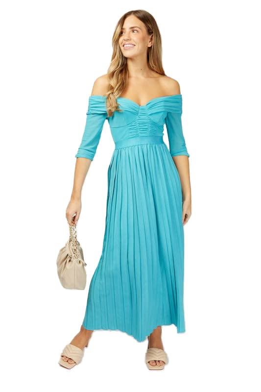 Little Mistress - Little Mistress Women Bronte Bardot Cupped Pleated Maxi Dress M Terquoise