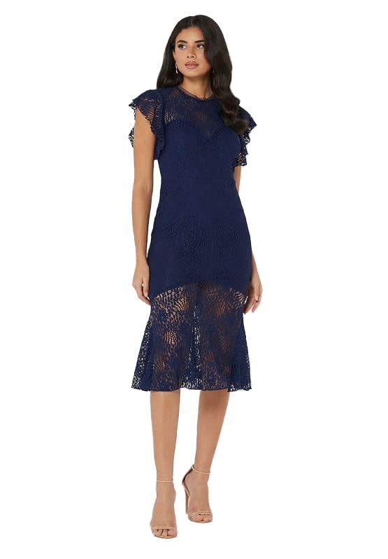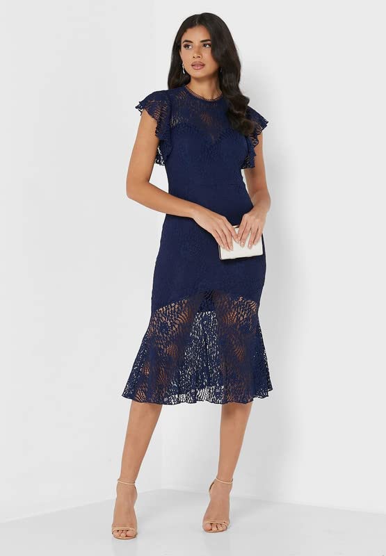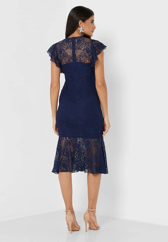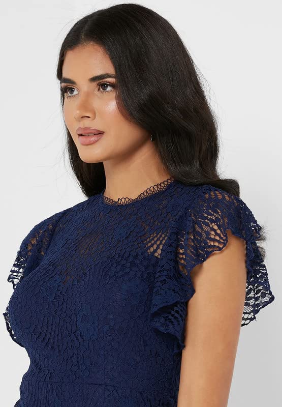 Little Mistress - ليتل ميستريس فستان نسائي بأكمام مرفرفة من الدانتيل مقاس XS لون كحلي