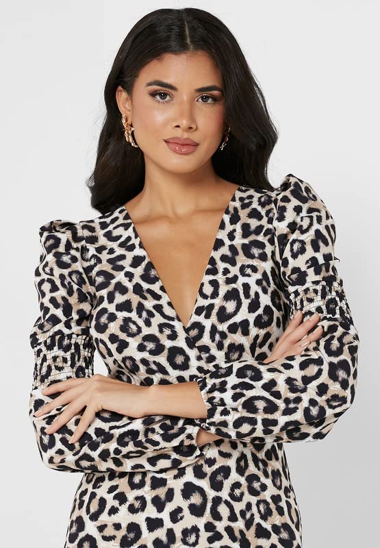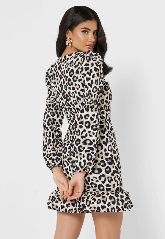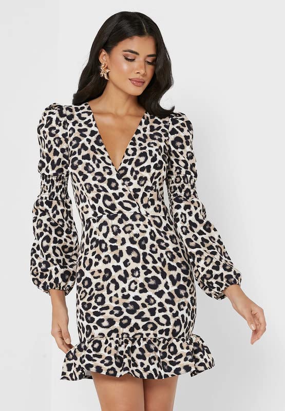 Little Mistress - Little Mistress Women Surplice Printed Ruffle Hem Dress M Animal Print