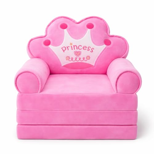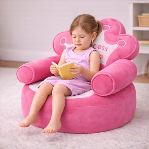 ماجنوليا تويز - Little Queen Chair for Kids – Plush Princess Sofa Chair with Fiber & Sponge Filling, Foldable Kids Armchair for Playroom, Bedroom & Nursery (Pink)