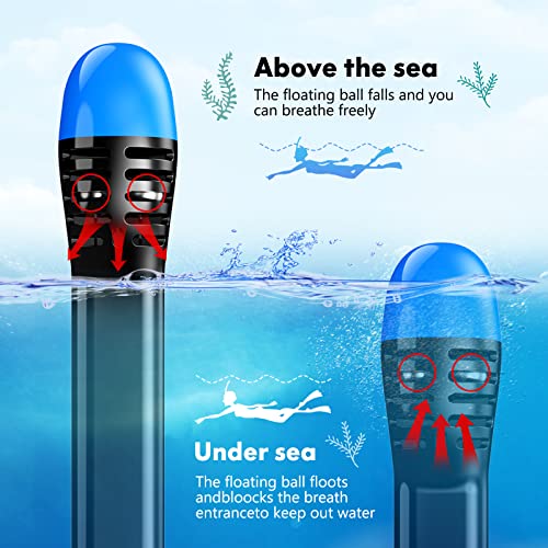- 🤿【Professional Anti-Fog Lens and Leak-Proof Design】The diving mask is made of high quality medical grade silicone. The silicone layer inside the snorkeling gear directly isolates the air from the mouth and nose perfectly. Exhaled air is not easy to adhere to the mirror surface. The perfect fit design of the face ensures the overall sealing of the diving mask, provides you with comfort. Experience the high-definition wide-angle viewing angle and discover the wonderful underwater world.