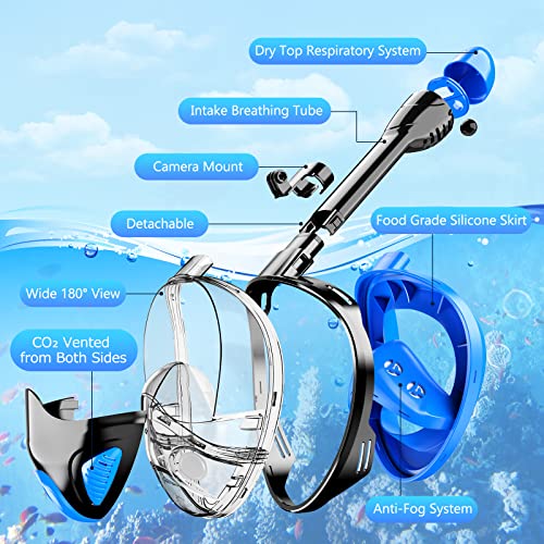 LITTLEJSY - Snorkel Mask,Full Face Snorkel Mask for Adults Kids,Snorkeling Gear with Detachable Camera Mount,Panoramic 180° View,Anti-Fog Anti-Leak Snorkling Set for Man and Women