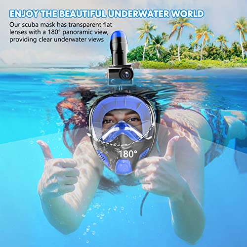 - 🤿【180-Degree Panoramic View and Support GoPro Installation】 Our snorkeling mask is designed with high-definition lenses, which will not bring you any dizziness and discomfort due to the bending of the line of sight. The 180-degree full face design is designed to provide you with a wider underwater swimming field of vision. It is equipped with a detachable small sports camera Mounts, such as GoPro etc. Record your diving experience and share it with family and friends.