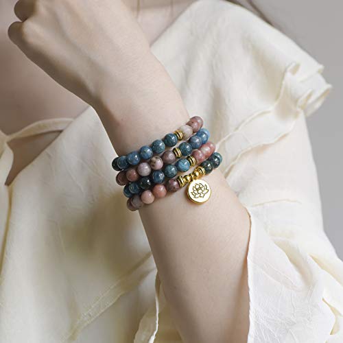 LIUANAN - LIUANAN Metal Stone 108 Tibetan 8mm Natural Gemstone Yoga Meditation Prayer Buddha Beads Mala Wrap Bracelet Necklace