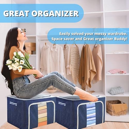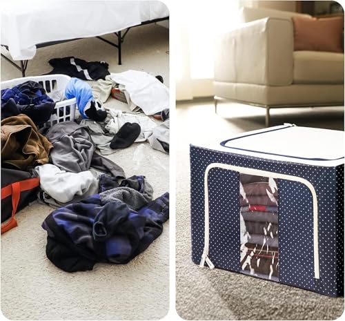 StarCart - صناديق تخزين ليفينج عبوة من قطعة واحدة سعة 55 لتر أزرق سماوي منظم ملابس اوكسفورد قابل للطي والتكديس مع إطار معدني وجزء شفاف ومقابض حمل وغطاء قماش لتخزين الملابس وأغطية السرير للدولاب