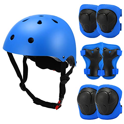 - 【مجموعة معدات الحماية 7 في 1】- تحتوي المجموعة على خوذة دراجة للأطفال واثنتان من واقيات الركبة ووسائد حماية الكوع ووسائد المعصم والتي تضمن لأطفالك حماية شاملة أثناء ممارسة الرياضة.