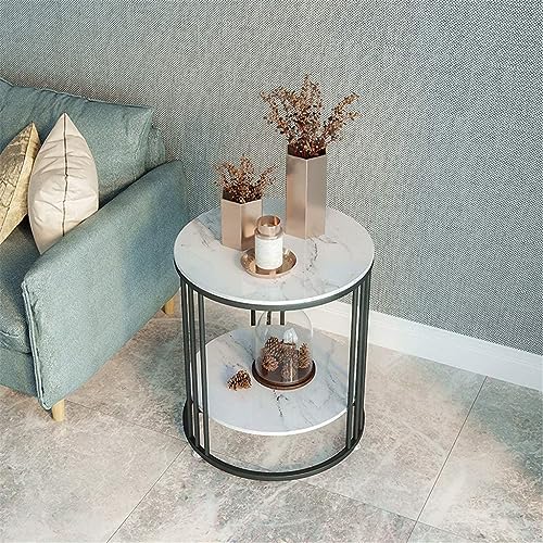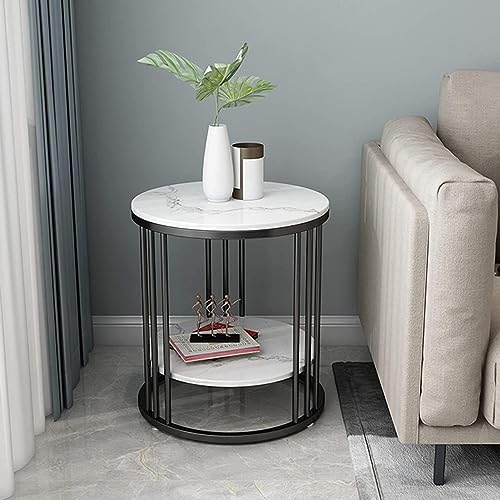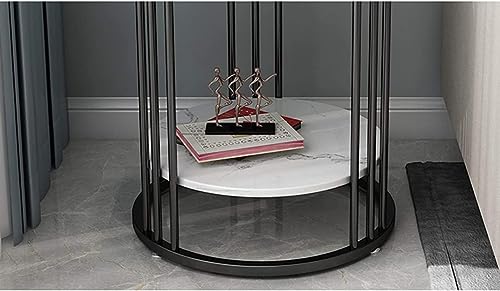 LIXERA - Side End Table with Striped Top and Metal Frame for Living Room, Bedroom (Black White)