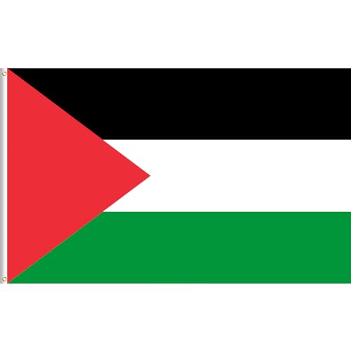 - مقاس العلم 3 × 5 قدم. علم فلسطين. معززة بحلقتين نحاسيتين لسهولة التعليق. يمكن استخدام العلم في الداخل والخارج.