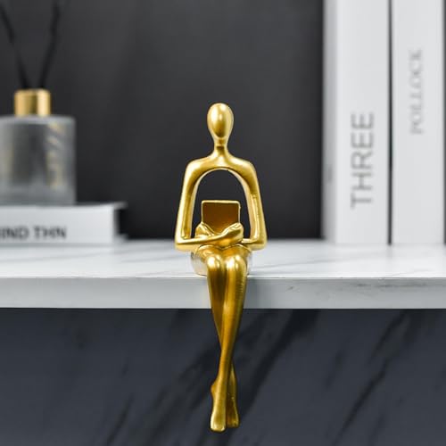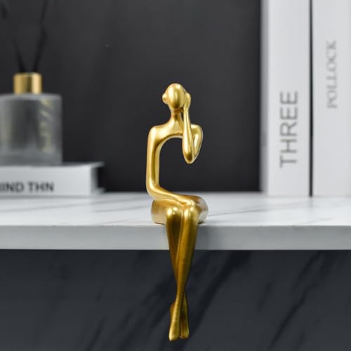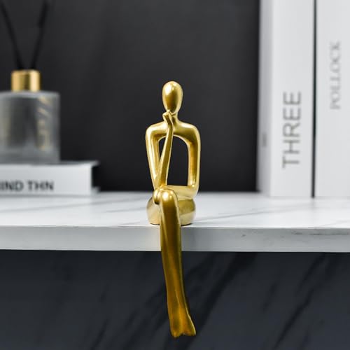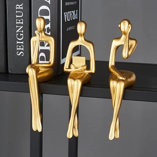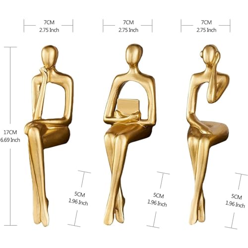 LIYJTK - Gold Sitting Thinker Statue Home Decor Accents, 3Pcs Resin Abstract Art Sculpture Collectible Figurines Bookshelf Decor for Home Decor Office Living Room Table Desktop Cabinets (Gold Set B)