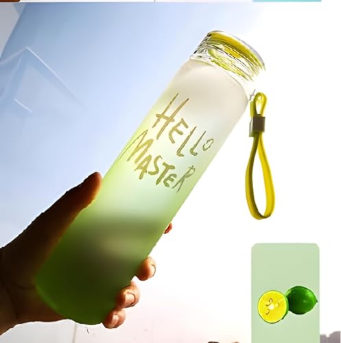 lizepto - Hello-Master Borosilicate Water Bottle – Transparent Water Bottle for Home, Office, Gym, Picnic and Travelling – Stylish Glass Bottle Multicolor (Water Bottle Set Of 1)