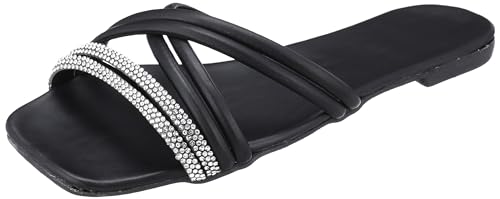 LKOER - حذاء سول 2 سول من الكوير بحزام مزدوج رفيع متقاطع مع حزام ماسي، أسود، مقاس 38