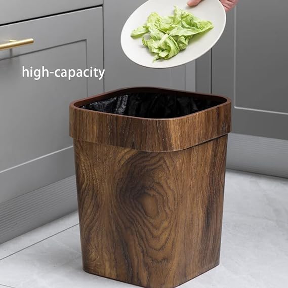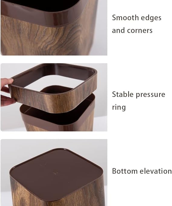 - Durable material: made of plastic material, durable, non-toxic and tasteless. The waste bin with a fine wood design, elegant