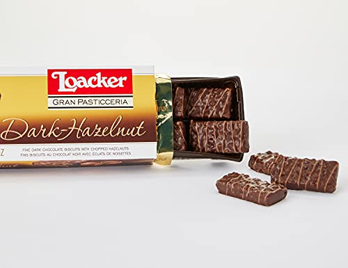 - CHOCOLATE BISCUITS: This box of Loacker's Gran Pasticceria Italian chocolate biscuits combine luxurious dark chocolate and chopped hazelnuts; Perfect as a snack or on the go