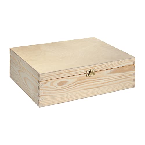 - Versatile: the wooden box with lid offers a variety of uses in the household, such as a gift box, as a keepsake box, baby, treasure chest, photo box, toy box, book box or in the home office, study, office as an organiser box and utensil box. The wooden box is equipped with a metal clasp.