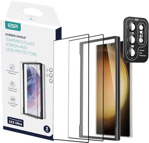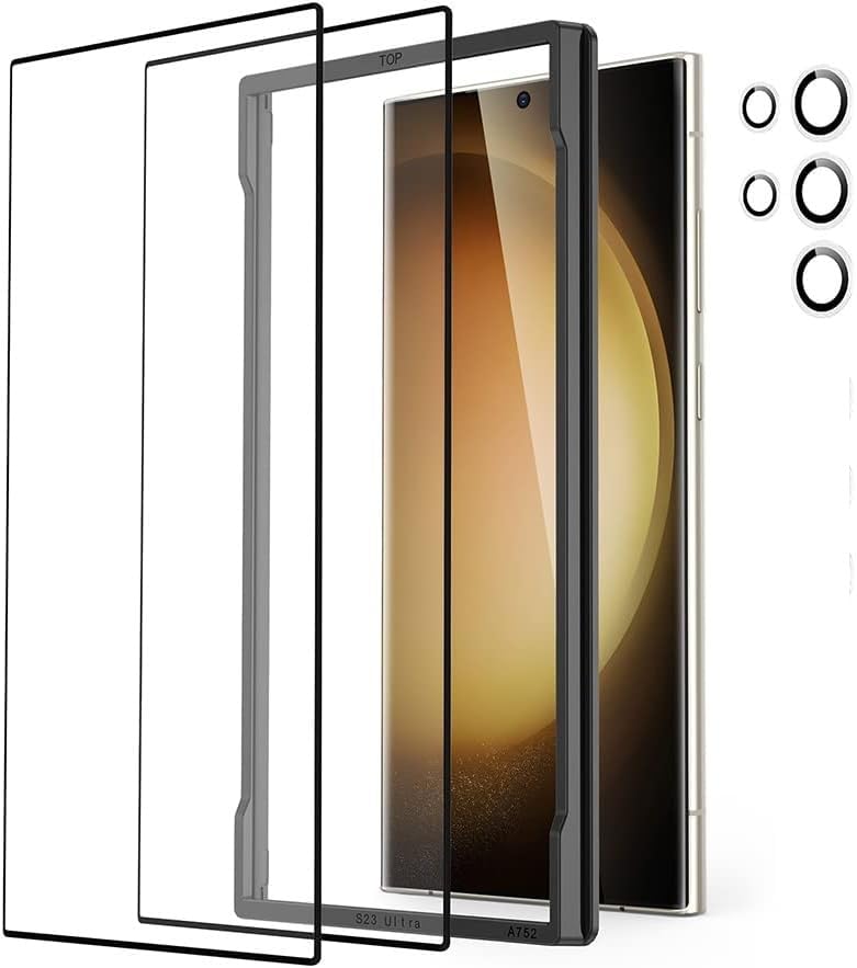 lockiva - lockiva ESR 2+1 Pack for Samsung Galaxy S23 Ultra Screen Protector Set, 2 Tempered Glass Screen Protectors and 1 Set Individual Lens Protectors, Full-Coverage Protection, Scratch Resistant