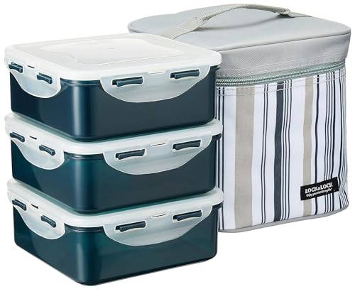 LocknLock - لانش بوكس (3 علب 870 مل + شنطة) من لوك اند رمادي، بلاستيك سيليكون