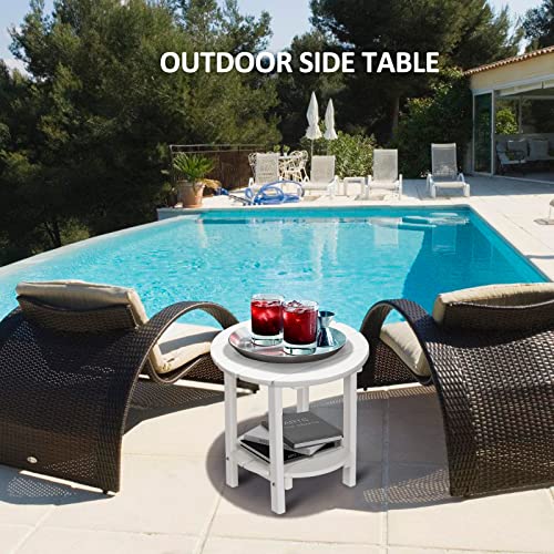 LOENIY - 2 -Tier Outdoor Side Table HDPE Adirondack Table Patio Side Table Weather Resistant End Table Small Outdoor Table (Round, White)
