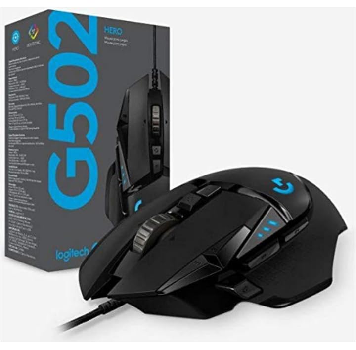Generic - Logi.t.e.c.h G502 HERO High Performance Wired Gaming Mouse, HERO 25K Sensor, 16000 DPI, RGB, Adjustable Weights, 11 Programmable Buttons, On-Board Memory, PC/Mac - Black