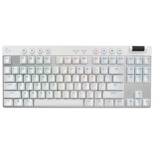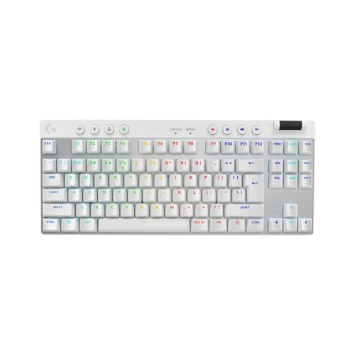 Logitech G - كيبورد لوجيتك جي وايرلس برو X TKL مع فوليوم رولر باللون الأبيض متوافق مع الكمبيوتر والماوس بواجهة إنجليزية