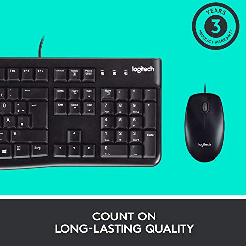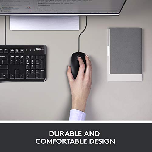 Logitech - Logitech MK120 Wired Keyboard and Mouse for Windows, Optical Wired Mouse, USB Plug-and-Play, Full-Size, PC/Laptop, UK Layout - Black