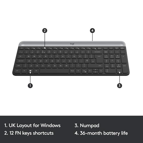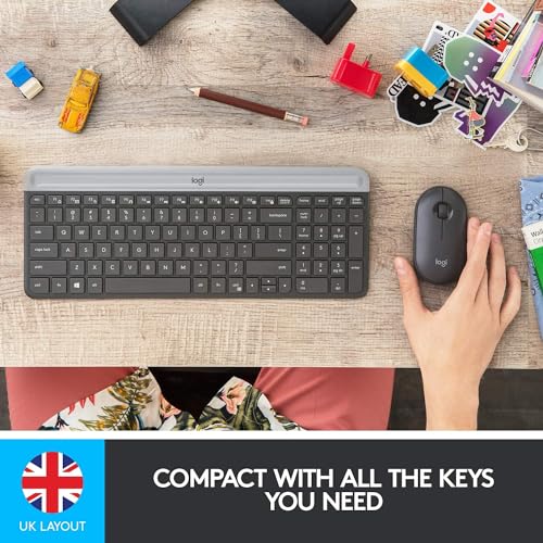 Logitech - مجموعة لوحة مفاتيح وماوس لاسلكية رفيعة Mk470 لنظام التشغيل ويندوز مستقبل USB موحد بتردد 2.4 جيجاهرتز تصميم منخفض هادئ للغاية عمر بطارية طويل ماوس ضوئي للكمبيوتر-اللاب توب من لوجيتك عربي جرافيت