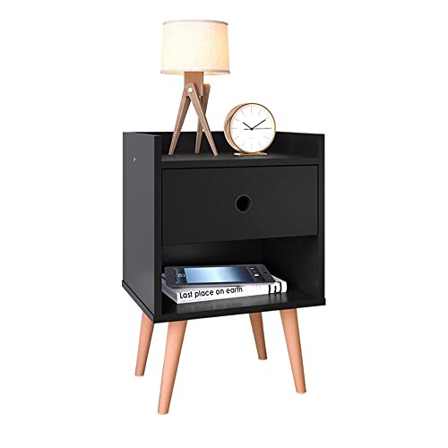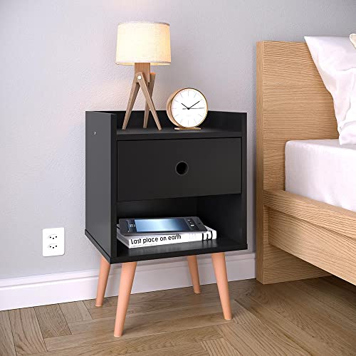Lojas RPM - Lojas RPM Set Kit 2 Bedside Tables Compact Retro Table Corner Side Bedroom Bed with Drawer and Niche for Decoration and Organization Corner Rest Decorate - Black - Stores