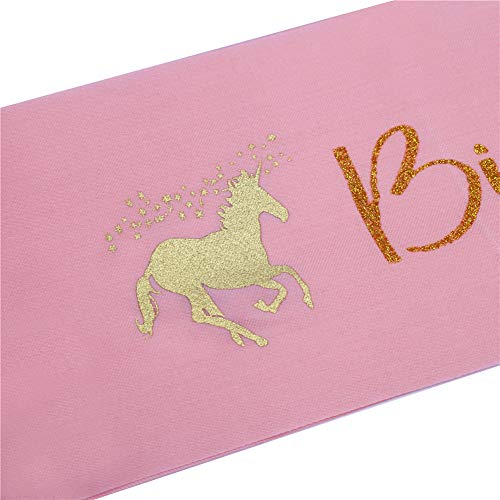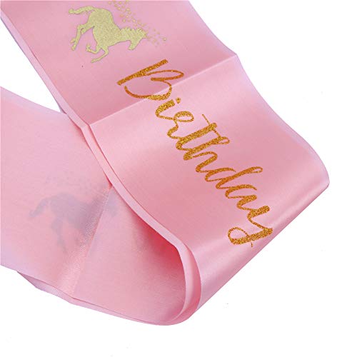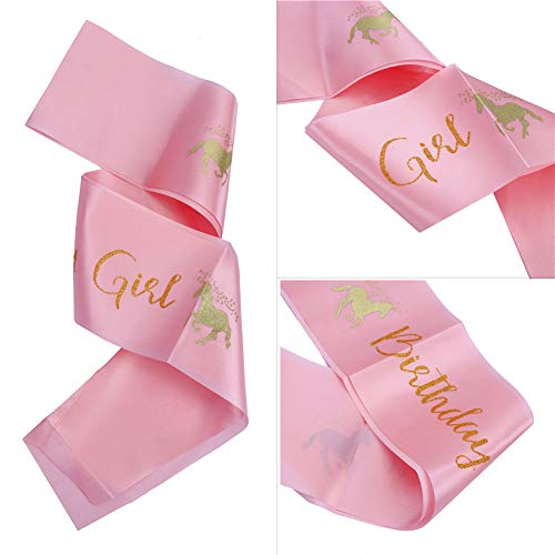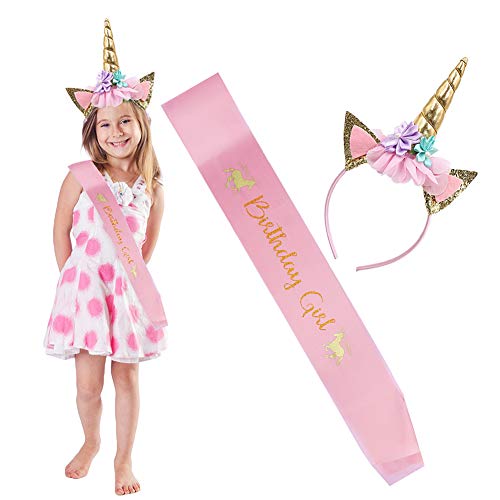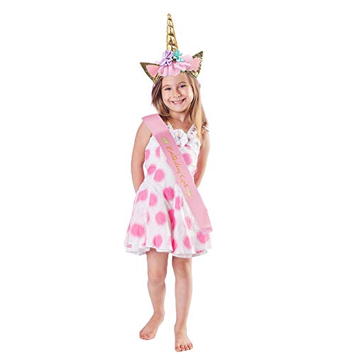 LOKIPA - LOKIPA Unicorn Headband with Birthday Girl Sash for Kids Unicorn Birthday Party Supplies (Gold)